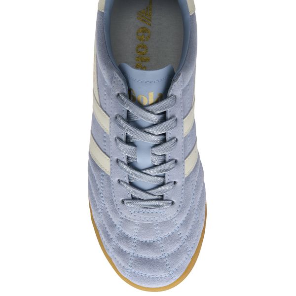 "Experience the timeless style of the Stadium Suede sneaker for women by Gola, inspired by classic soccer shoes. This sneaker combines retro design with modern comfort and is the perfect choice for fashion-conscious women. The quilted upper made of high-quality suede in an impressive air blue is a real eye-catcher, while the characteristic wingflash in offwhite and the classic rubber sole give the shoe an unmistakable look."