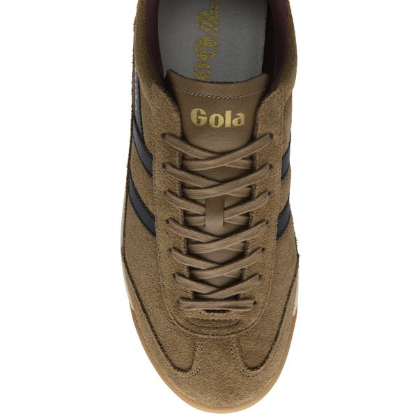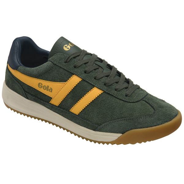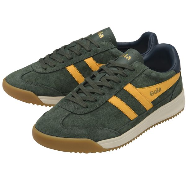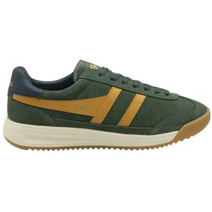 "The Tornado '88 sneaker from Gola brings a breath of fresh air to the iconic Tornadofamily and combines classic terracestyling with modern accents. Made from high-quality leather, this men's shoe not only offers style, but also comfort and warmth thanks to its padded interior. The evergreen suede upper material gives the shoe a sophisticated look, while the sunflower collar with serrated teeth and the navy blue heel tab ensure a striking look. The two-tone sole rounds off the design and makes these trainers a must-have for fashion-conscious men who value timeless style."