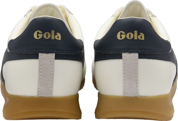 "The Torpedo Leather sneakers for men by Gola are stylish and functional footwear inspired by iconic tribal insoles. These sneakers embody the authentic Gola terrace style from 1985 and offer a perfect combination of retro charm and modern dynamics. With their short toe cap and elongated laces, they are reminiscent of classic training shoes that once mastered the transition from the pitch to the track."