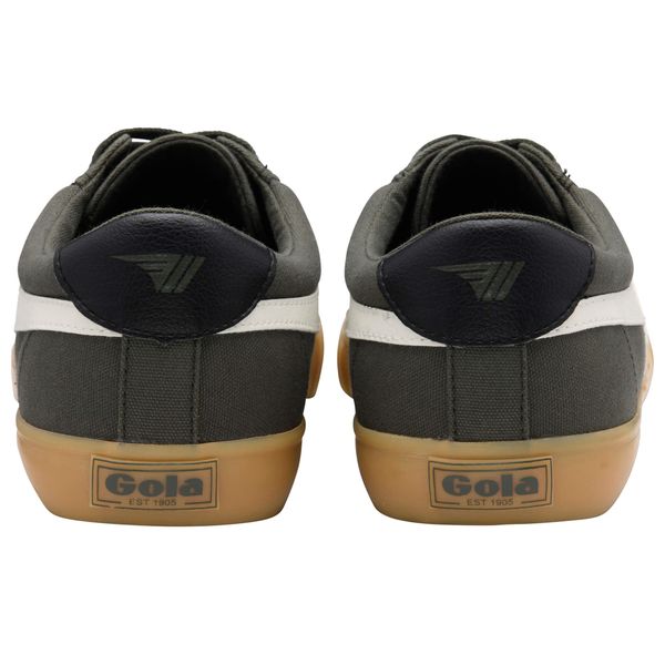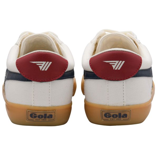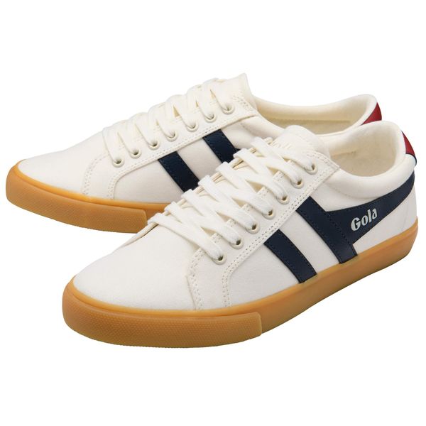 "The Varsity sneaker for men by Gola is the perfect addition to any casual wardrobe. This classic lace-up shoe impresses with its maritime design, which stands out thanks to the high-quality cottoncanvas upper. The striking white wingflash and deep red heel cap give the shoe a sportyelegant look, which is stylishly rounded off by the characteristic Gola branding. Thanks to the padded and warming properties, the trainers not only offer style but also comfort, making them ideal for cooler days. Combine this casual sneaker with your favorite pair of jeans for a timeless look that will impress both in everyday life and on special occasions."