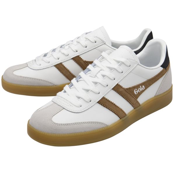 "The Viper Leather sneaker from Gola is the perfect addition to any urban and everyday look. Inspired by the casual terrace styling of the 70s, this sneaker combines timeless charm with modern accents. The soft white leather upper is accentuated by contrasting tobacco-colored Gola Wingflash trim, which gives the shoe a fresh and stylish aesthetic. The robust Cup sole not only ensures a secure grip, but also a fashionable appearance"