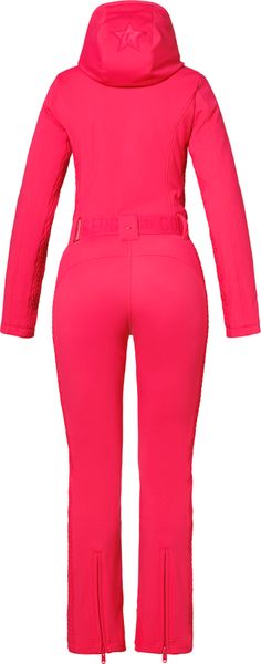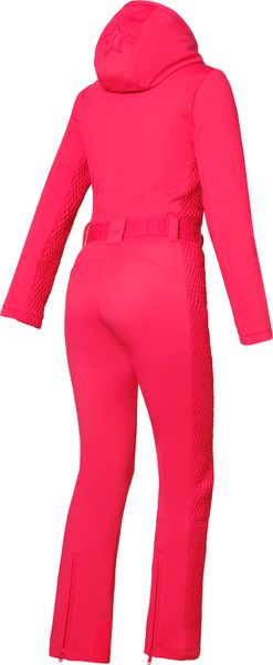 "The suit impresses with stylish details such as the smockdetail along the side seam and arms as well as the star appliqué made of imitation leather on the fixed hood. Snow guards are integrated at the bottom for additional protection against snow. The Angele ski suit has a slim fit and a regular fit so that you can choose your usual size. The option of a faux fur trim offers another way to customize the look."