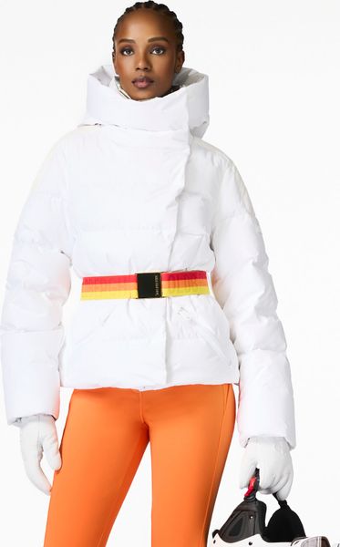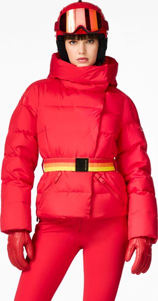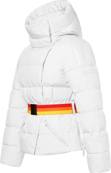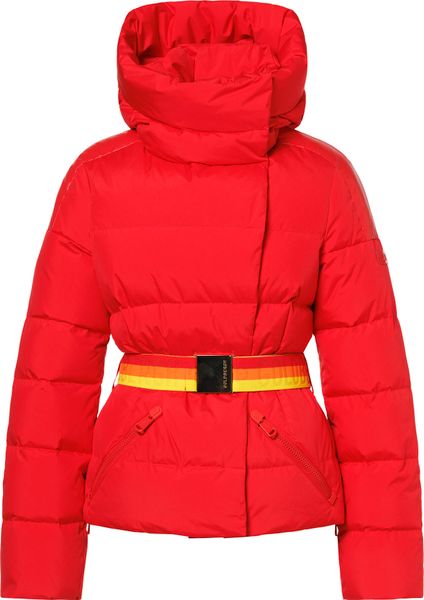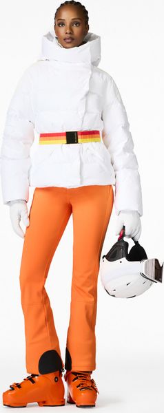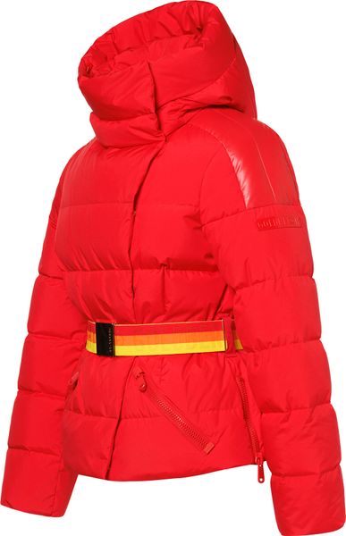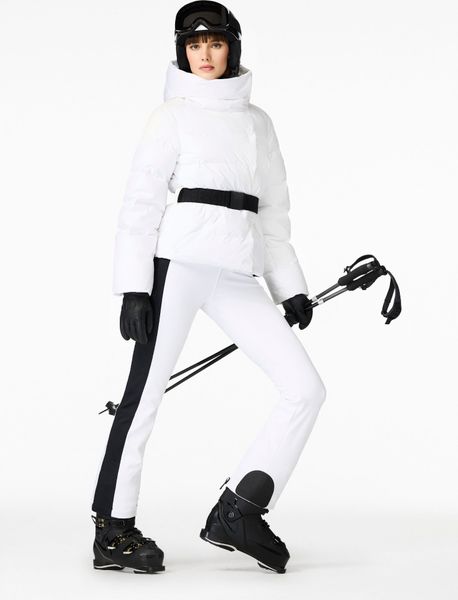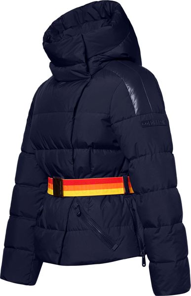 "The Bufera ski jacket not only offers excellent protection from the elements, but also a high degree of freedom of movement. Thanks to the zippers on the side seams and the knitted cuffs on the inner sleeves, the cold stays out while you can move freely. The elasticated belt and detachable snow guards provide additional protection and style, while the RDS-certified down lining ensures cozy warmth without harming the environment"