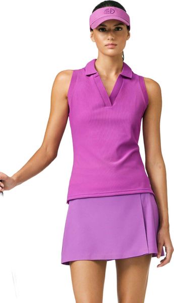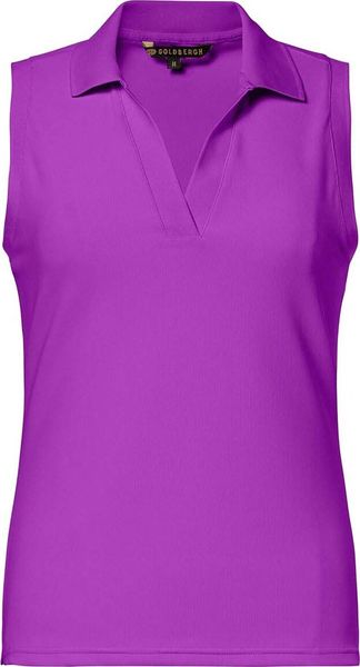 "Discover the Goldbergh polo top without sleeves, which impresses with its elegant design and high-quality materials. The 2x2 structured rib not only gives the top a sophisticated look, but also ensures a comfortable fit. The tonal ribbed polo collar with a Vneckline and matching armholes underline the stylish look and make it the perfect piece for sporty activities or relaxed days out."