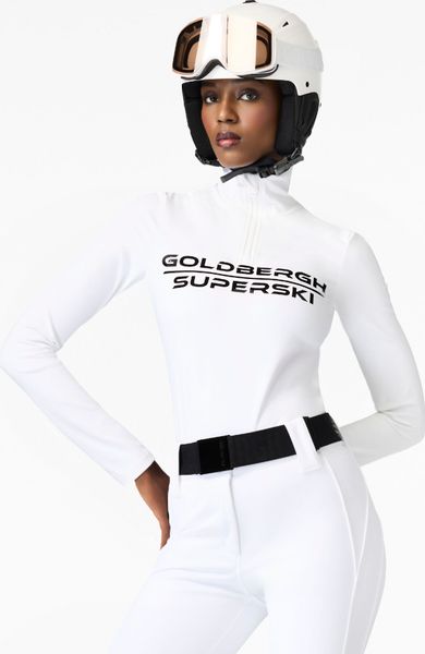 "The Elisa Ski Body by Goldbergh is the perfect choice for style-conscious female skiers who value comfort and functionality. Made from high-quality powerstretch interlock with a soft, brushed back, this ski bodysuit offers excellent thermal insulation and a comfortable fit, even on cold days on the slopes. The close-fitting collar and longer front zip allow for an individual fit and provide reliable protection against wind and weather."