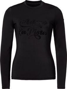 "Discover the stylish and functional Francesca Long Sleeve Tee by Goldbergh, which will perfect your outfit both on and off the slopes. This long-sleeved shirt impresses with its powerstretch interlock that ensures optimum comfort and freedom of movement. The elegant "Adoro la pista" Rhinestone print on the chest gives the shirt a touch of glamour, while the discreet metal brand label on the sleeve and the woven label on the side underline the high-quality workmanship"