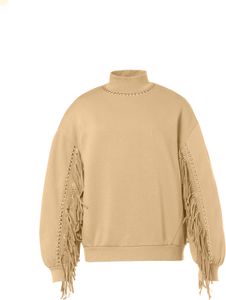 "Stylish sweater with soft fleece, fringes and studs for ultimate comfort and a fashionable look."