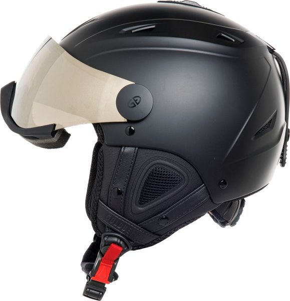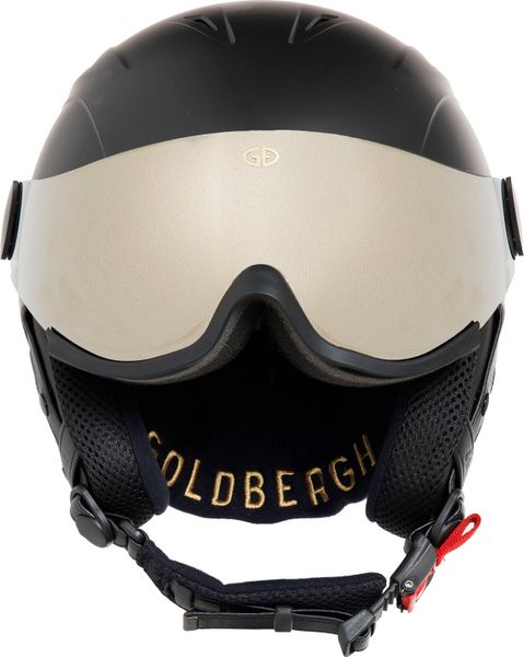 "The visor is CE-certified according to EN166:2001 and has a special anti-coating and anti-scratch treatment that ensures clear vision in all weather conditions. An adjustable ventilation system and a size adjustment system on the back guarantee a high level of comfort and a perfect fit. Special highlights are the luxurious details such as the embossed goldbergh logo on the ear pads and the gold embroidery on the inside of the helmet."