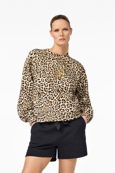 - Style Details Jaguar pullover fleece with soft, brushed back All-over Jaguar print Neck tape, cuffs and waistband made of self-adhesive fabric 3D rubber logo print on the chest Rubber logo badge on the upper back Rubber label on the side GOTS-certified organic cotton Material: Brushed back fleece, 79% organic cotton, 18% recycled polyester, 3% elastane