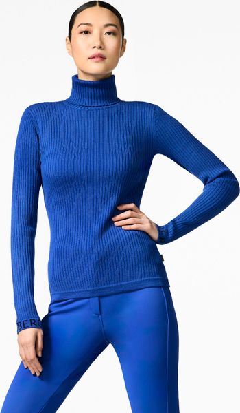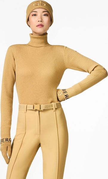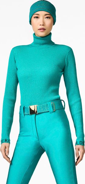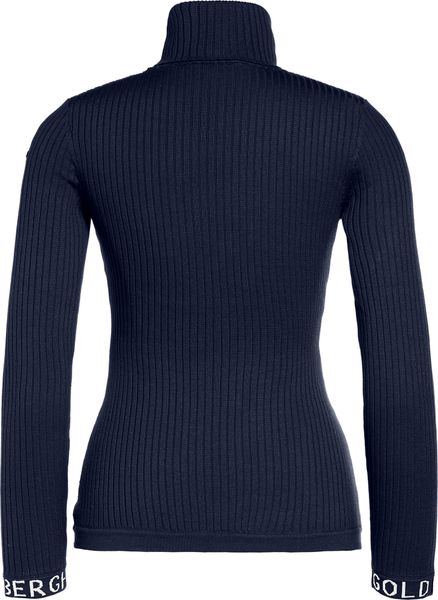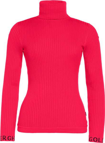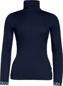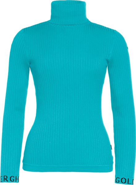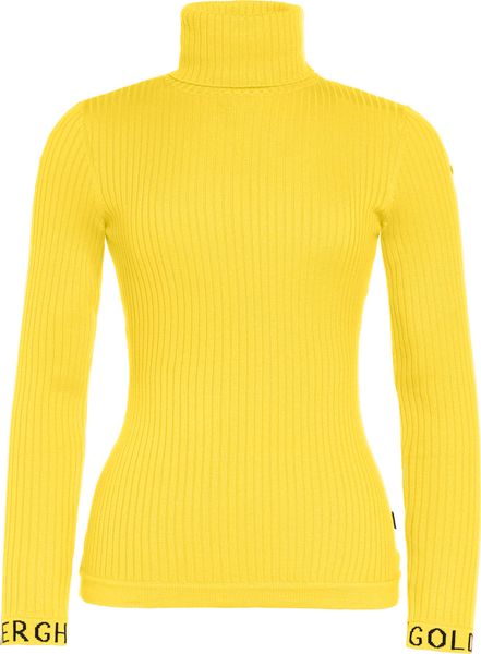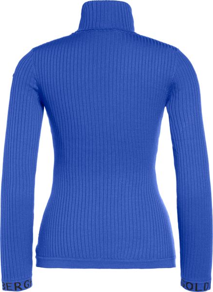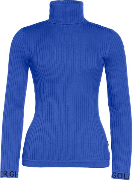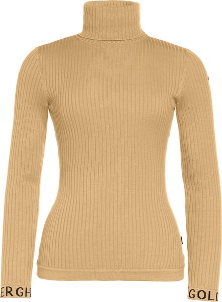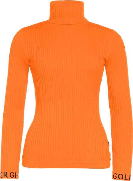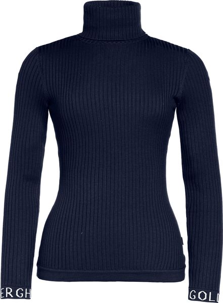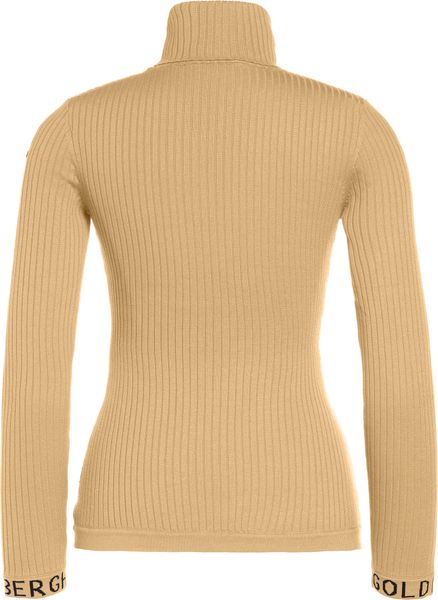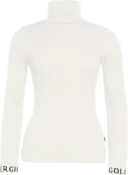 "The Mira Long Sleeve Knit Sweater from Goldbergh combines stylish elegance with the highest level of comfort. This finely crafted sweater impresses with its ribbed knit, which not only creates a modern look, but also ensures a comfortable fit. The close-fitting turn-down collar gives the design an elegant touch, while the contrasting goldbergh knit details on the cuffs add a special accent"