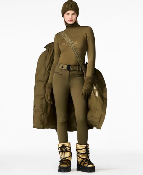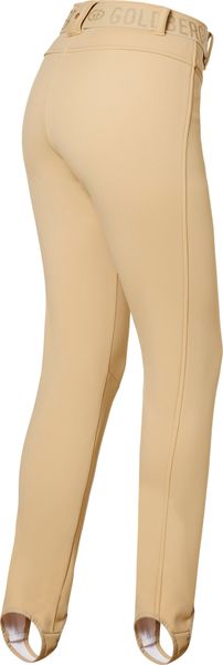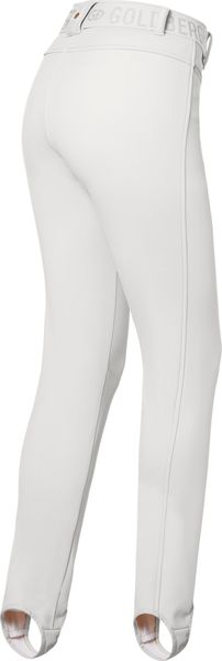 "The Paris Ski Pants from Goldbergh combine stylish design with functional performance and are the ideal companion for your next ski adventure. These retro-style softshell ski pants not only offer a slim fit that accentuates your silhouette, but also practical comfort thanks to two front pockets with zippers in which you can safely store small items. The elasticated waistband ensures a secure fit, while the stirrups at the hem prevent the trouser legs from riding up and ensure a perfect fit over your ski boots."