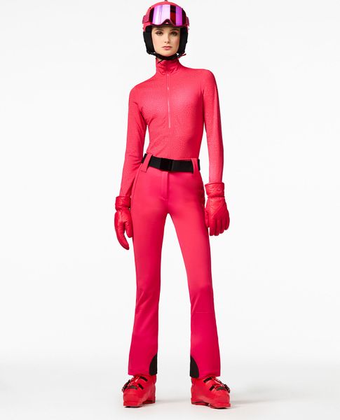 "With an inside leg length of 76 cm at size 38, the trousers are ideal for different body sizes, and the 180 cm model is a size 36, which underlines the versatility and adaptability of the fit. These ski trousers are more than just a functional piece of clothingu2013 they are a statement for stylish and discerning female skiersu2013."