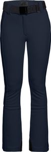 "The bonded fleece on the inside provides additional warmth, while the zippers at the back hem and the snow guards on the inside of the bottom offer optimum protection from snow. The Pippa ski trousers are also available in a longer version that offers 4 cm more length, perfect for taller skiers. The separate belt and slim fit give the trousers a modern silhouette, while the long service life ensures that you will enjoy this garment for many seasons to come."