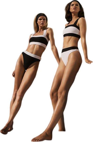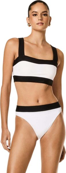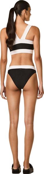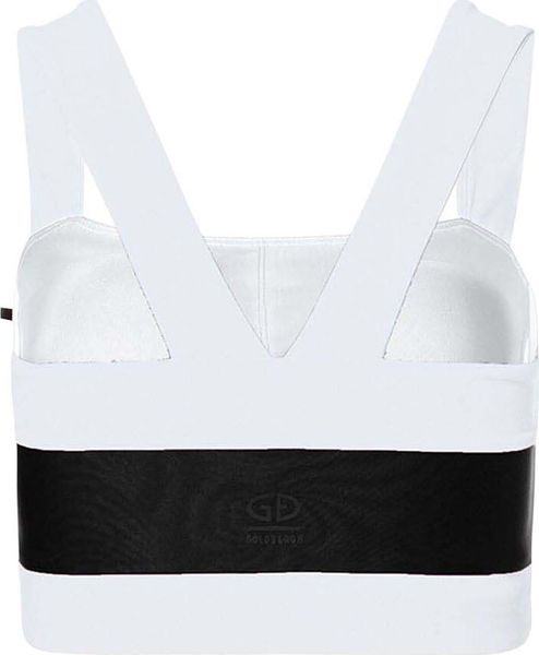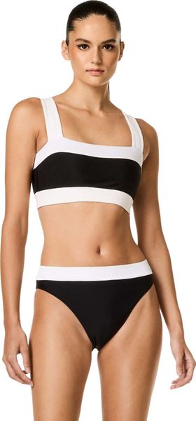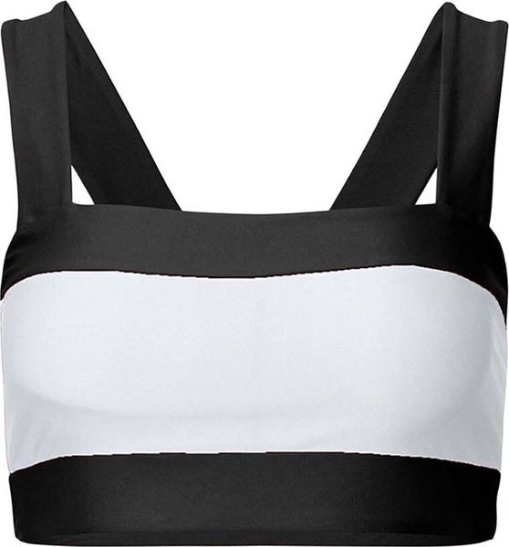 "Experience ultimate style and comfort with the Plonge bikini top from Goldbergh, featuring a modern color block design and innovative materials. Made from a power stretch jersey, this bikini top offers a close fit and features a jersey lining for added comfort. The removable cups and concealed plastic bones in the side seams offer optimum support, while the crossover strap detail on the back provides an eye-catching accent."
