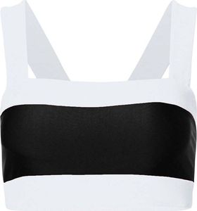 "Experience ultimate style and comfort with the Plonge bikini top from Goldbergh, featuring a modern color block design and innovative materials. Made from a power stretch jersey, this bikini top offers a close fit and features a jersey lining for added comfort. The removable cups and concealed plastic bones in the side seams offer optimum support, while the crossover strap detail on the back provides an eye-catching accent."