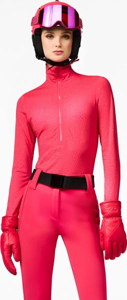 "The Serena Ski Pully by Goldbergh is the ideal companion for female skiers who value style and functionality. Made from high-quality stretch jersey with a soft, brushed back, this sweater not only offers warmth and comfort, but also an excellent fit thanks to its slim silhouette. The close-fitting collar and longer u00bdfront zip provide additional protection against the cold and make it particularly easy to put on and take off."