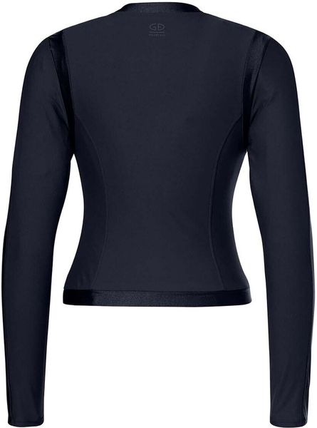 - Style Details Long-sleeved rashguard Powerstretch jersey lined Contrasting inserts for colors #9008 & #8371 Shiny tone-on-tone inserts for colors #9000 & #5643 Front zip with branded click fasteningPuller Single hook fastening behind the zipper Tight-fitting collar Tonal GB logo print on the neck Woven brand label on the side Complete your set with the Plonge GB460-51-261 bikini top and the Oceane GB460-61-261 bikini bottoms Fabrics: Colors: Jersey, power stretch, quick-drying, UV protection, chlorine and salt water resistant 78 % recycled polyamide, 22 % elastane Weiu00edf: Jersey, power stretch, quick-drying, UV protection, chlorine and salt water resistant 80% polyester, 20% elastane Tonal shiny contrasting #9000 & #5643 High-gloss jersey, quick-drying, UV protection, chlorine and salt water resistant, 82% recycled polyester, 18% elastane lining: Colors: 90 % polyamide, 10 % elastane Weiu00df: 92 % polyester, 8 % elastane