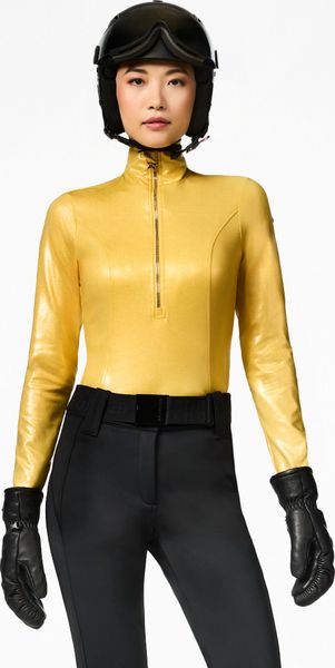 "The Wink Ski Pully by Goldbergh is the perfect choice for all female skiers who value style and functionality. Made from powerstretch interlock with a softly brushed back, this pully offers an optimal combination of freedom of movement and comfort. The slim fit and raglan sleeves create an elegant silhouette, while the close-fitting collar and longer u00bdu00efront zip provide additional protection against the coldu00e."