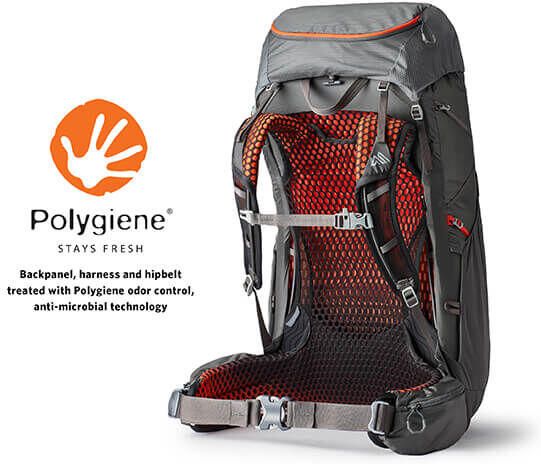 "Lightweight, comfortable touring backpack with a volume of 45 liters and odor-inhibiting technology for fresh adventures."
