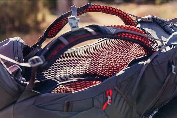 "100D High Density Nylon (40% recycled) and 210D High Density Nylon (45% recycled) with PFC-free DWR, bottom 210D High Density Nylon (45% recycled) with C0 DWR, shoulder and hip belt made of Lifespan EVA foam with Polygieneu00uae Stays Fresh, Carrying system made of aluminum tube and fiberglass, inner lining 135d polyester (40% recycled) with C0 DWR, bluesignu00u00ae-certified buckles, rain cover made of nylon taffeta"