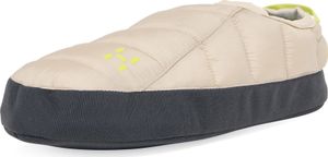 "The robust PUu00e4strengthened outsole of the slippers ensures a long service life and offers additional grip on different surfacesu00e4chen. Thanks to the elasticated ankle ties, the slippers adapt individually and prevent cold from penetrating. A special highlight is the environmentally friendly production: the slippers are made from recycled materials and therefore help to reduce waste. The printed Haglu00f6fs logo rounds off the design in style."
