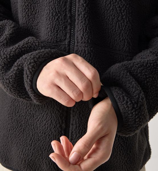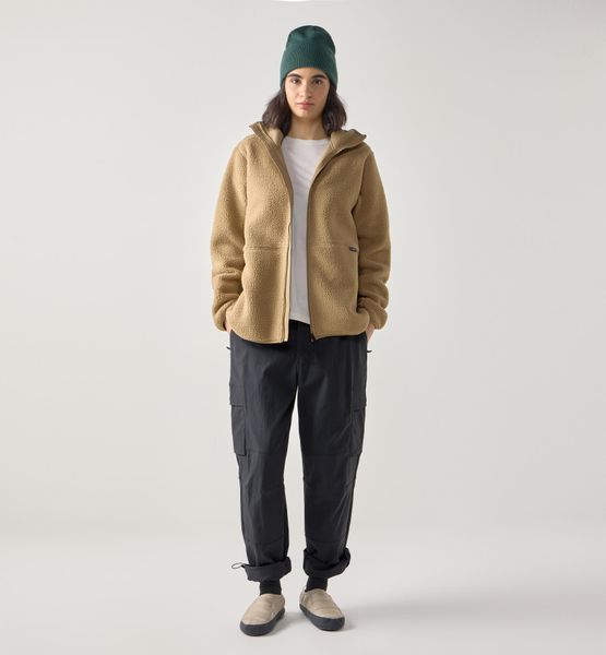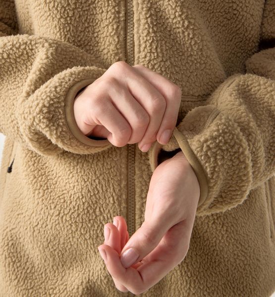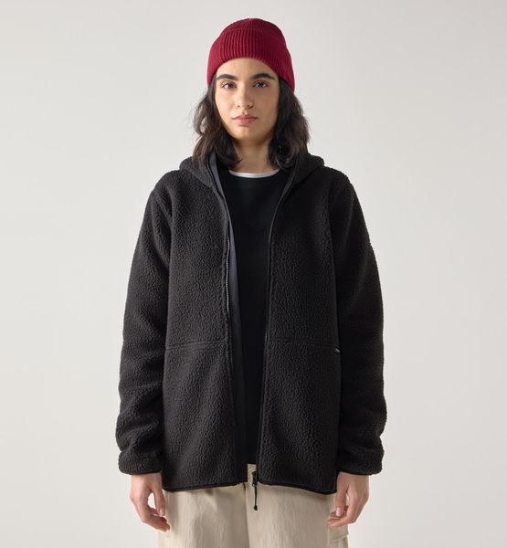 "The integrated hood reliably protects you from wind and cold, while the stylish design of the Funu00e4s Pile Hood Women is both functional and fashionable. This hooded jacket is a must-have for all women who value comfort, functionality and sustainability."