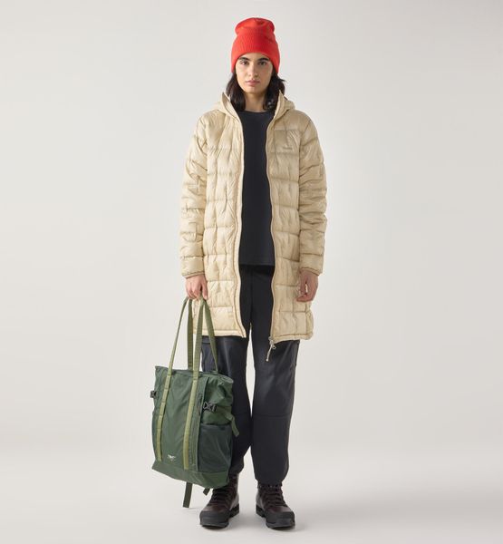 "With a length of 109 cm in size M and a standard fit, the coat elegantly hugs the body and creates a slim silhouette. The Hu00u00f6rm baffles and streamlined design give the coat a modern look that cuts a fine figure both on the hiking trail and in the city. Two practical slit pockets with zippers provide space for your essentials and keep your hands warm"