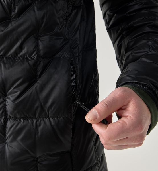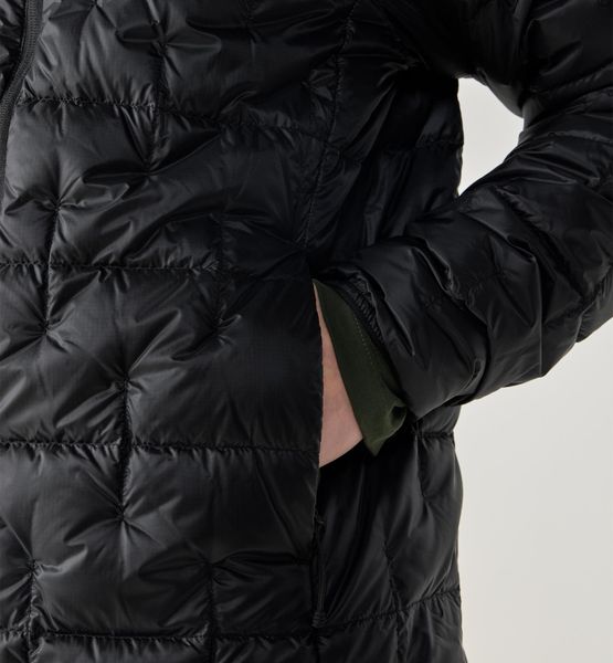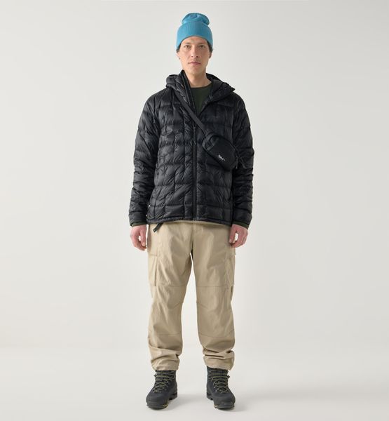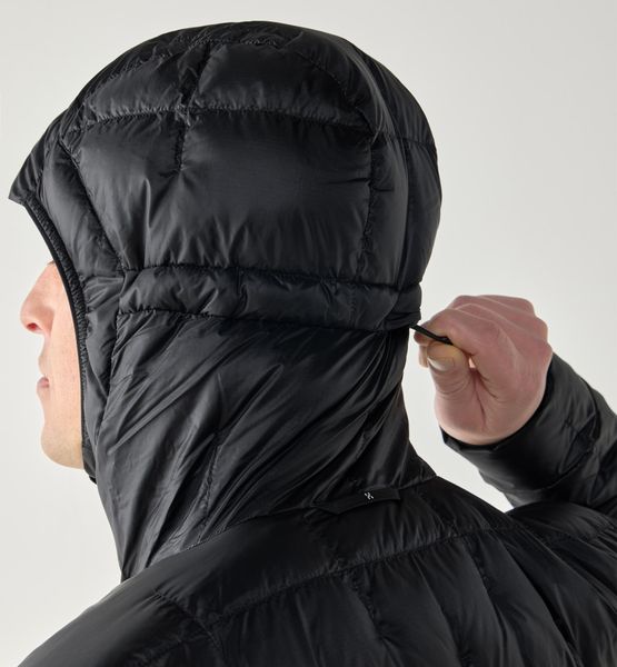 "Experience ultimate comfort and warmth with the Hede Down Hood Men by Haglu00e46fs, a versatile down jacket that is perfect for everyday wear and hiking. This men's jacket combines lightness with excellent insulation thanks to its high-quality 700 CUIN down filling. The jacket not only offers excellent insulation, but also a modern and close fit, which is optimized by H-fu00f6rmige baffles to give you a stylish look both on the trail and in the city"