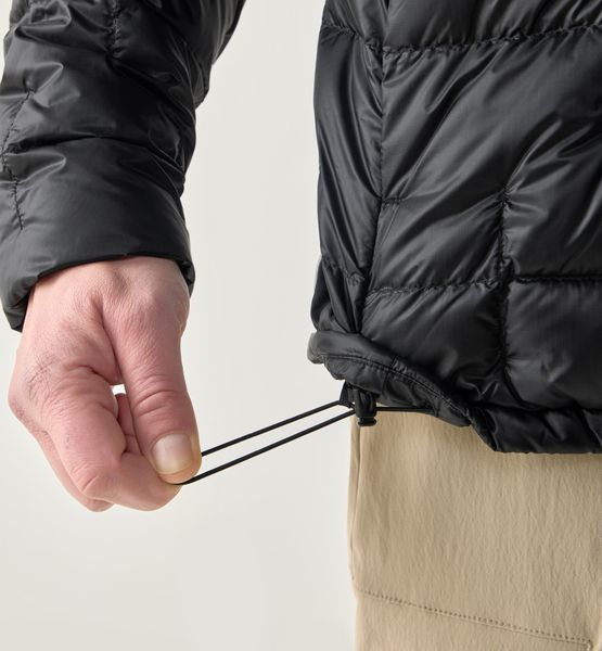 "The Hede Down Hood Men is equipped with practical features that increase comfort. An adjustable hood protects against wind and weather, while elasticated cuffs ensure a secure fit. Two slit pockets with zippers provide storage space for important items and keep your hands warm. The elastic properties of the material ensure freedom of movement and make this jacket the ideal companion for outdooradventures"