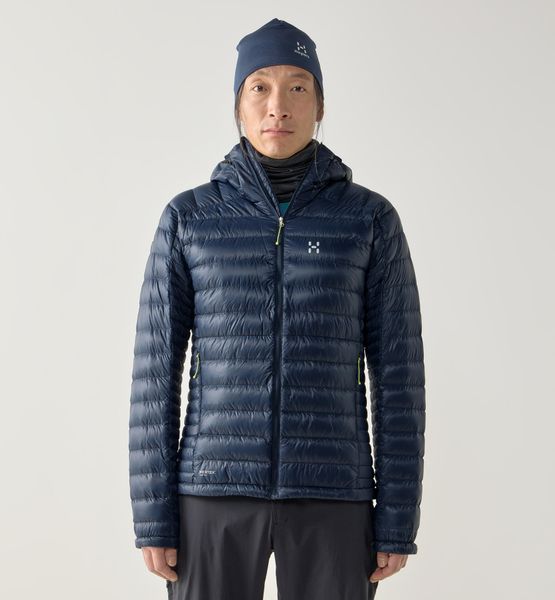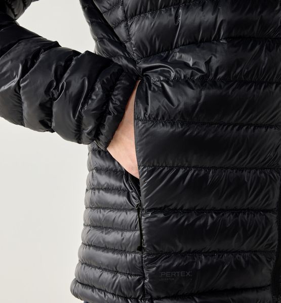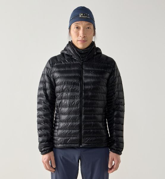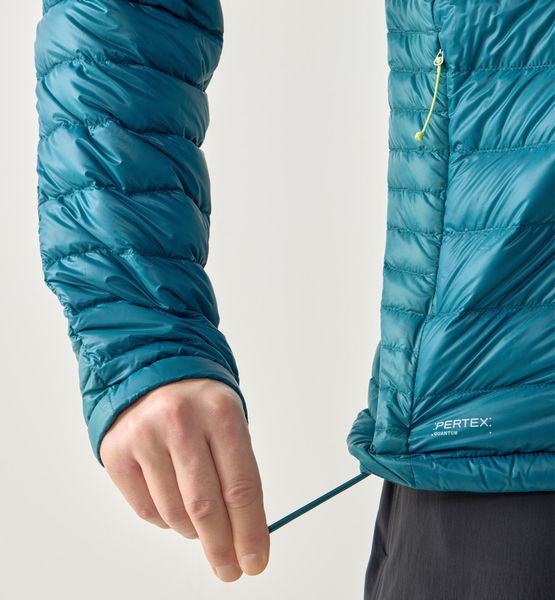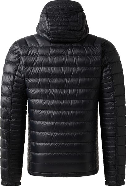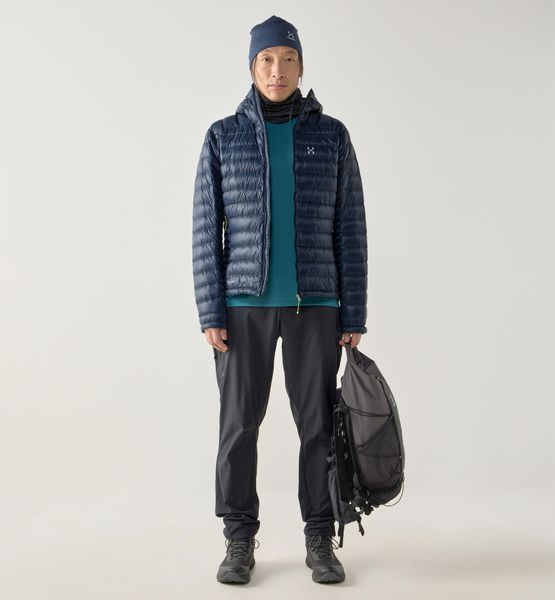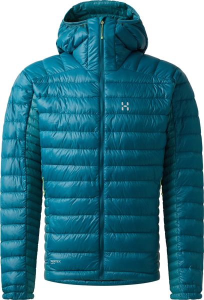 "The L.I.M Down II Hood Men by Haglu00f6fs is the ideal choice for anyone who values lightness and functionality when hiking. This men's jacket combines super-light, tear-resistant Pertex Quantum® material with innovative ExpeDRY® down insulation, which has a fill power of 800 cuin. This technology ensures that moisture actively evaporates and the insulation chambers remain dry, which enables constant heat development. The body-mapped baffle construction optimizes insulation and breathability exactly where it is needed most."
