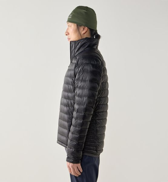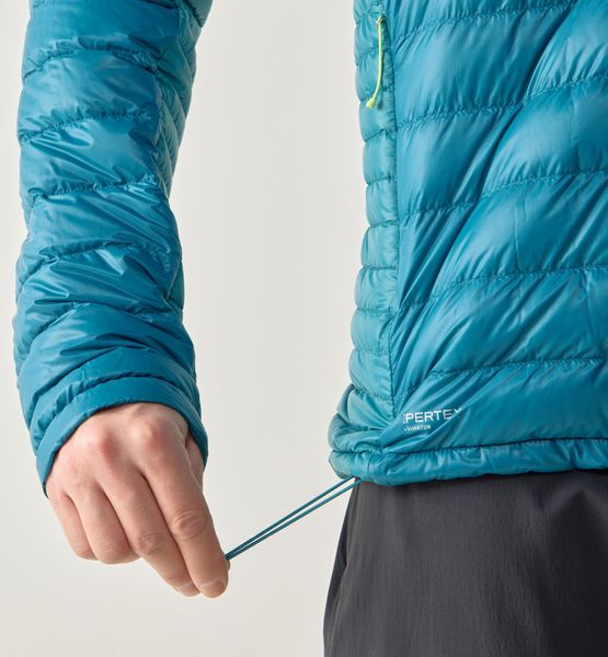 "Ultralight, insulating down jacket for men with excellent thermoregulation and compact packability."