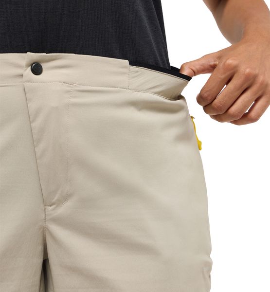 "Super lightweight and stretchy shorts for various outdooractivitiesu00e4ten. This model is a reworked version of Haglu00f6f's popular L.I.M Fuse Shorts and features a modernized fit and look as well as updated functions. They are made from a lightweight and breathable fabric that follows your every move and wicks away moisture. The elasticated waistband ensures a comfortable fit. It also has numerous pockets hidden along the seams, which can be used to safely store small essentialsu00f6n."
