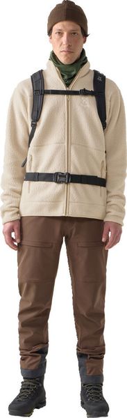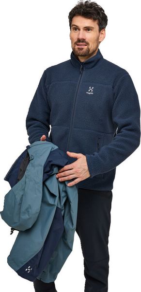 "The Mossa Pile Jacket for men by Haglu00f6fs combines comfort, style and functionalityu00e4t for outdooru00fadventures. This jacket is made from insulating recycled polyester pile, which is not only environmentally friendly, but also breathable and quick-drying. These properties make it the ideal choice for activities such as hiking and trekking, especially on longer tours where reliable equipment is crucial. The jacket offers spacious pockets that both keep cold hands warm and provide space for small items. Whether worn on its own or as a mid-layer under another layer, the Mossa Pile Jacket ensures cozy warmth and comfort, even when temperatures drop."