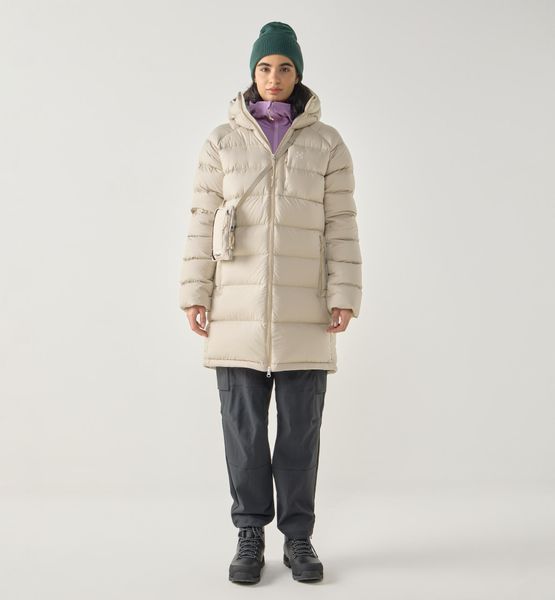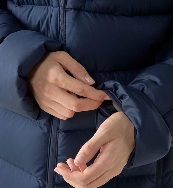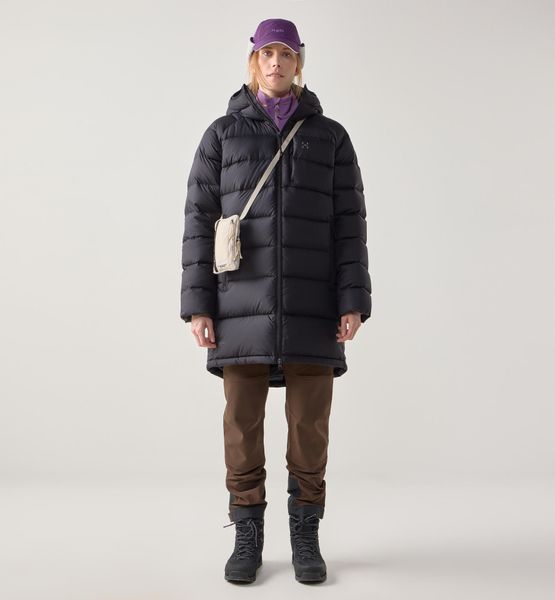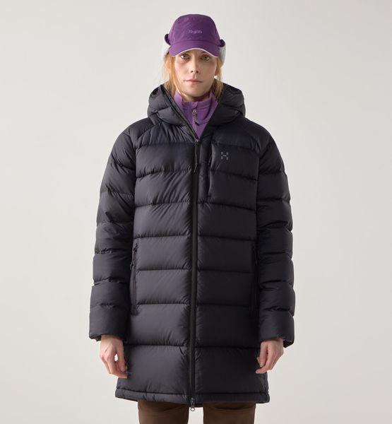 "The Rosson Down Parka for women by Haglu00f6fs is the ideal companion for anyone who wants to enjoy the outdoors even in cold temperatures. Specially designed for hiking activities, this parka not only offers excellent protection from the cold, but is also extremely comfortable to wear. Thanks to the high-quality 600 CUIN down filling and the innovative insulating film in particularly exposed areas such as the shoulders and hood, the warmth is optimally stored"