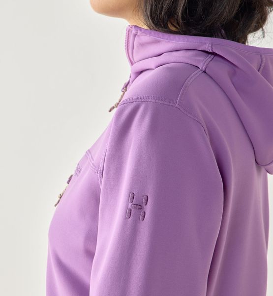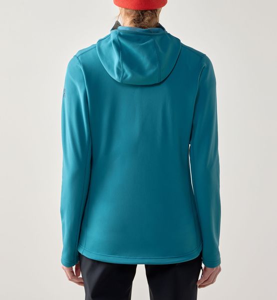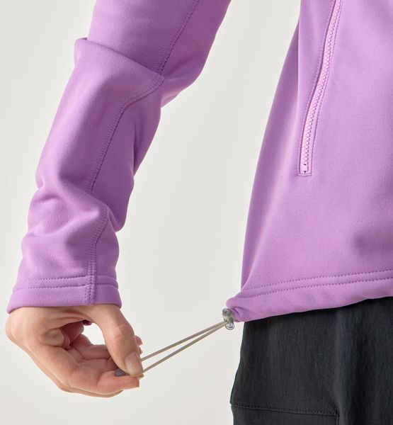 "Versatile women's fleece hoodie with hood, ideal for outdoor activities, keeps you warm, is breathable and dries quickly."