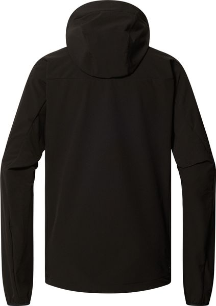 "A hard-wearing softshell jacket for everyday explorations in wind and weather. We have designed it to accompany you on numerous excursions. It is made from a soft and extremely durable fabric that repels water and dirt. The jacket is equipped with an adjustable hood and slit pockets with zippers. The True Black coloring is solution-dyed, which means that the fibres are dyed before spinning. Less water and energy are used in the solvent dyeing process than in conventional processes and the color lasts longer."