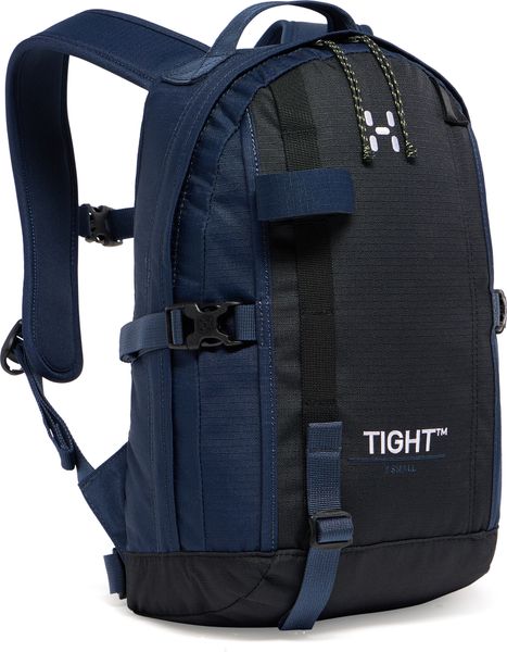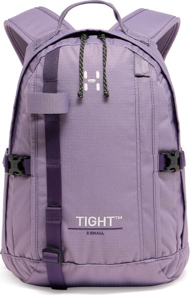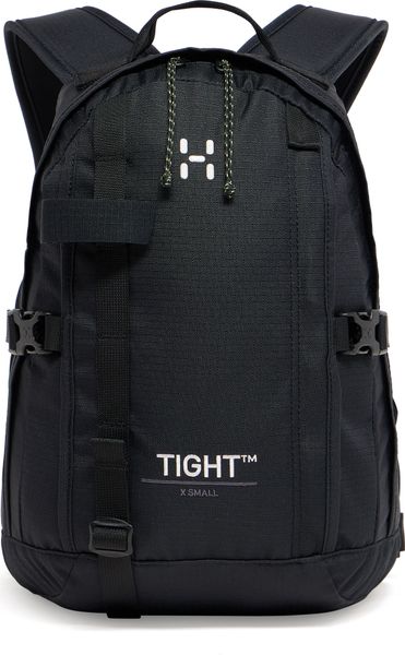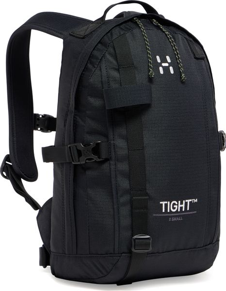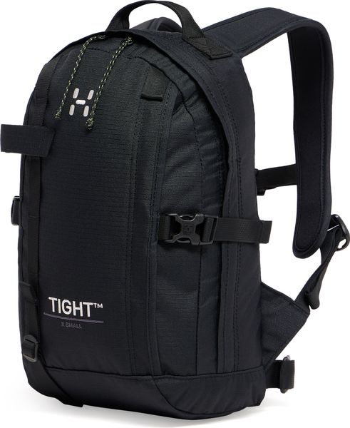 "TIGHT X-SMALL is Haglu00f6f's iconic ergonomic backpack for outdoorand everyday adventures. It offers excellent carrying comfort thanks to its drop-shaped construction, which gives the backpack a lower center of gravity for balance and stability. It also features a soft, ventilated back system, anatomical shoulder straps and an adjustable hip belt and chest strap. Made from durable ripstopfabric made from 100% recycled polyester and treated with PFAS-free DWRimpregnation to repel water and dirt. In addition to the main compartment, it offers various pockets and attachment points for your equipment."