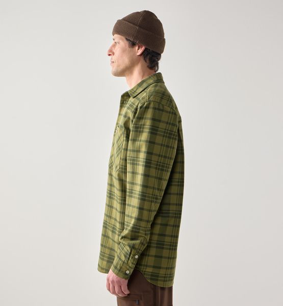 "The Virke Flannel Shirt for men from Haglu00f6fs is the perfect choice for outdooru00f6 adventures and everyday pursuitsu00e4. Made from 100% organic cotton, this shirt has a soft, peachy surface that feels pleasant against the skin and is breathable at the same time. The offset flatlock seams are designed to increase durability and minimize chafing when wearing a backpack, making it ideal for hiking."
