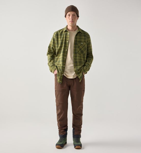 "Soft, breathable flannel shirt made from organic cotton, ideal for hiking and everyday adventures."