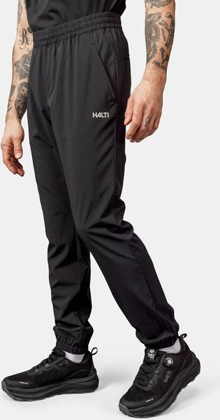 "The Grets M Pants from Halti are the perfect addition to your wardrobe if you are looking for a versatile and stylish pair of jogging trousers. Whether for golf, leisure or everyday wear, these trousers not only offer a high level of comfort, but also functionality thanks to their stretchy material and the vegetable DWRu00e4t finish. The relaxed fit with elasticated cuffs at the end of the legs ensures a comfortable feel, while the elasticated waistband with drawstring allows for an individual fit."