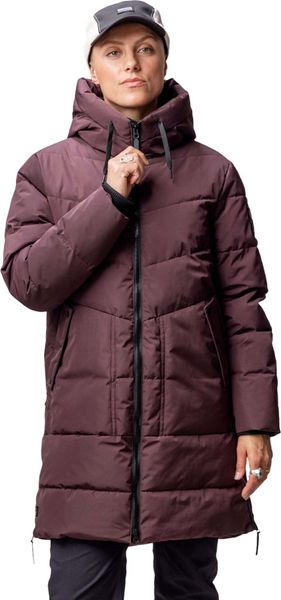 "Stylish, weatherproof women's parka jacket with recycled material, ideal for various outdoor activities."