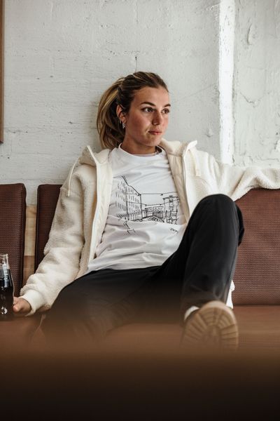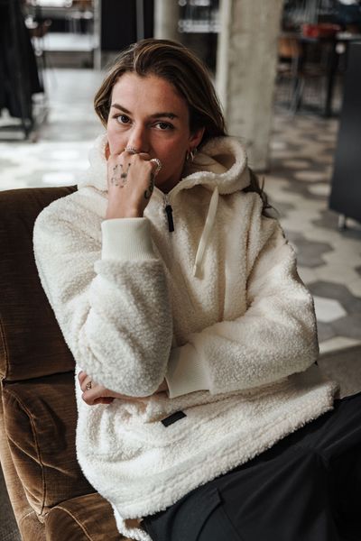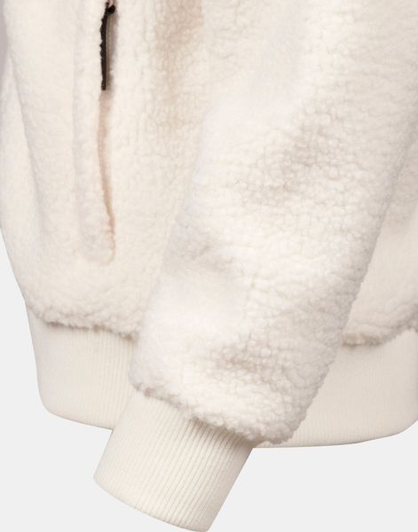 "This jacket is a true all-rounder that combines the casual charm of a sweat jacket with the luxurious feel of shearling. It is designed to provide cozy warmth even on the coldest days. The absence of ribbing underlines the mono-material style and ensures a minimalist and elegant appearance"