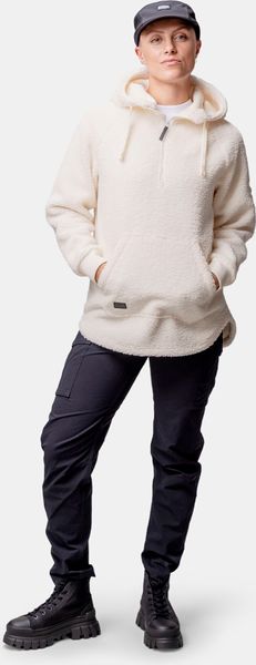 "The Lykky W fleece sweater from Halti is the ideal garment for leisure activities and stylish leisure activities. With its soft shearlingtexture and athleisuredesign, this pullover combines comfort and fashionable chic. Made from 100% recycled polyester, it not only feels great to wear, but also contributes to sustainability. The loose fit and longer cut make it versatile u2013 whether worn on its own or in combination with other items of clothingu2013. Thanks to the mono-materialstyle without ribbing, this sweater is particularly easy to care for and retains its shape even after frequent wear and washing"