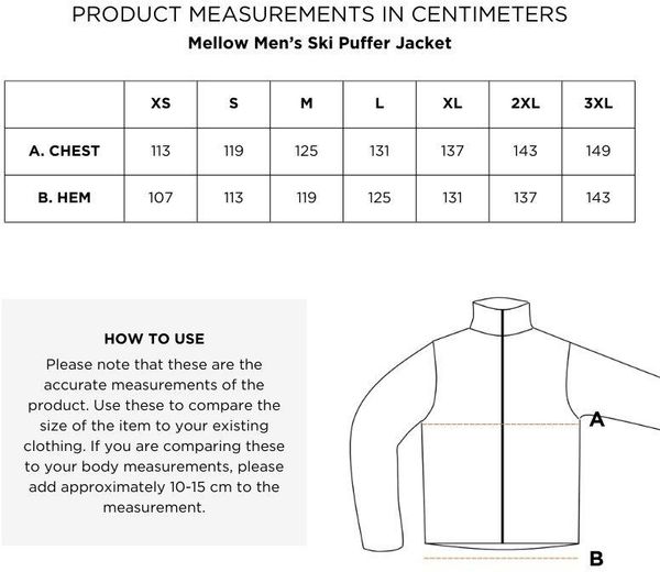 Waterproof puffer jacket for men with functional ski features, ideal for outdoor activities and everyday use.