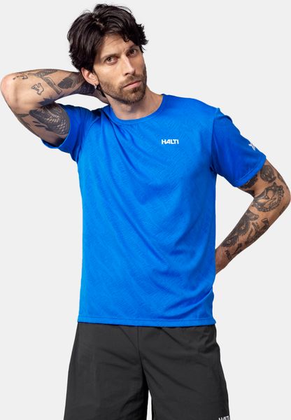"The Oulanka M T-Shirt from Halti offers you maximum comfort and freedom of movement during all your sporting activities, whether it's running or fitnesstraining. The Active Dry fabric ensures that you stay pleasantly dry even during intensive workouts. Made from partially bio-based material, this T-shirt helps to reduce the carbon footprint by using biomass. The stylish jacquard pattern, inspired by the unique texture of the Lappland mountains, gives the shirt a special aesthetic touch."