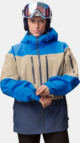 "The Rizle Unisex 3L DX ski jacket from Halti is the perfect companion for all your outdooradventures, whether skiing, hiking, trekking or leisure. This versatile jacket offers optimum protection in all weathers and impresses with its innovative design and high-quality materials. Made from partially recycled and bluesignu00ae-certified DrymaxXu00ae Nano 3-Lagen fabric, it offers exceptional waterproofness and breathability to keep you dry and comfortable even in adverse conditions"