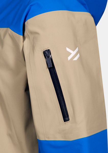 "In addition to its function as a robust outer layer, the jacket has Primaloft Thermo-Fleeceinsertsu00e4 on the front and back for additional comfort and warmth. Practical features such as the snow guard, a fixed and adjustable hood and underarm ventilation guarantee flexibility and adaptability in changing weather conditions. The Rizle ski jacket is also equipped with two full-length chest pockets, a sleeve pocket and hand pockets, all with zippers to securely store your personal items."