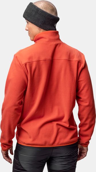 "Technical mid-layer jacket made from recycled fleece for comfort and warmth during active outdoor activities."
