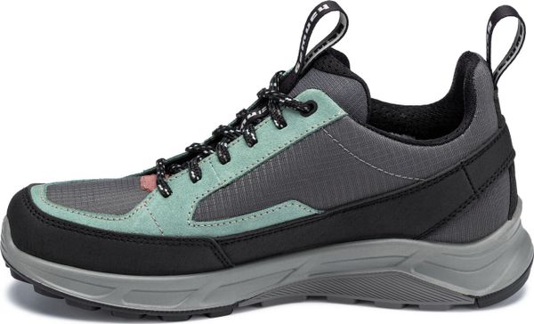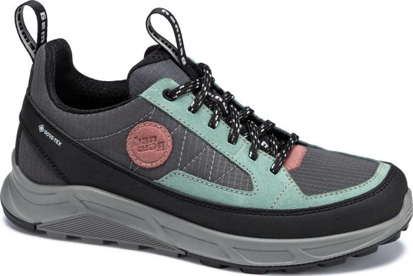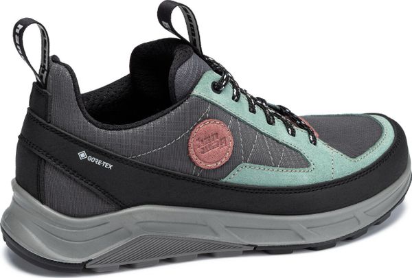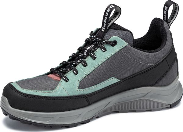 "The Rotpunkt Light Low Lady GTX by Hanwag is the perfect choice for active women who are out and about in the city as well as in nature. This versatile shoe combines the iconic Rotpunkt spirit with the proven Hanwag DNA and offers a particularly lightweight construction. Thanks to the waterproof and breathable GORE-TEX membrane, your feet stay dry and comfortable in any weather, while the high-quality split leather in combination with textile and PU-microfiber ensures durability and robustness."