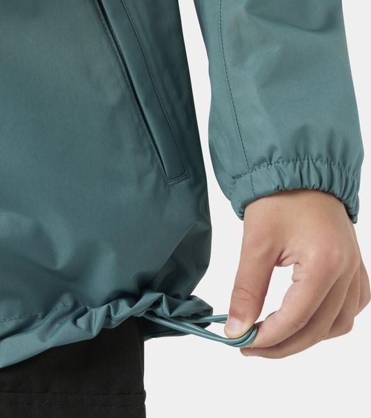 "Waterproof children's rain jacket with adjustable hood and HELLY TECHu00ae for optimum protection in rainy weather."